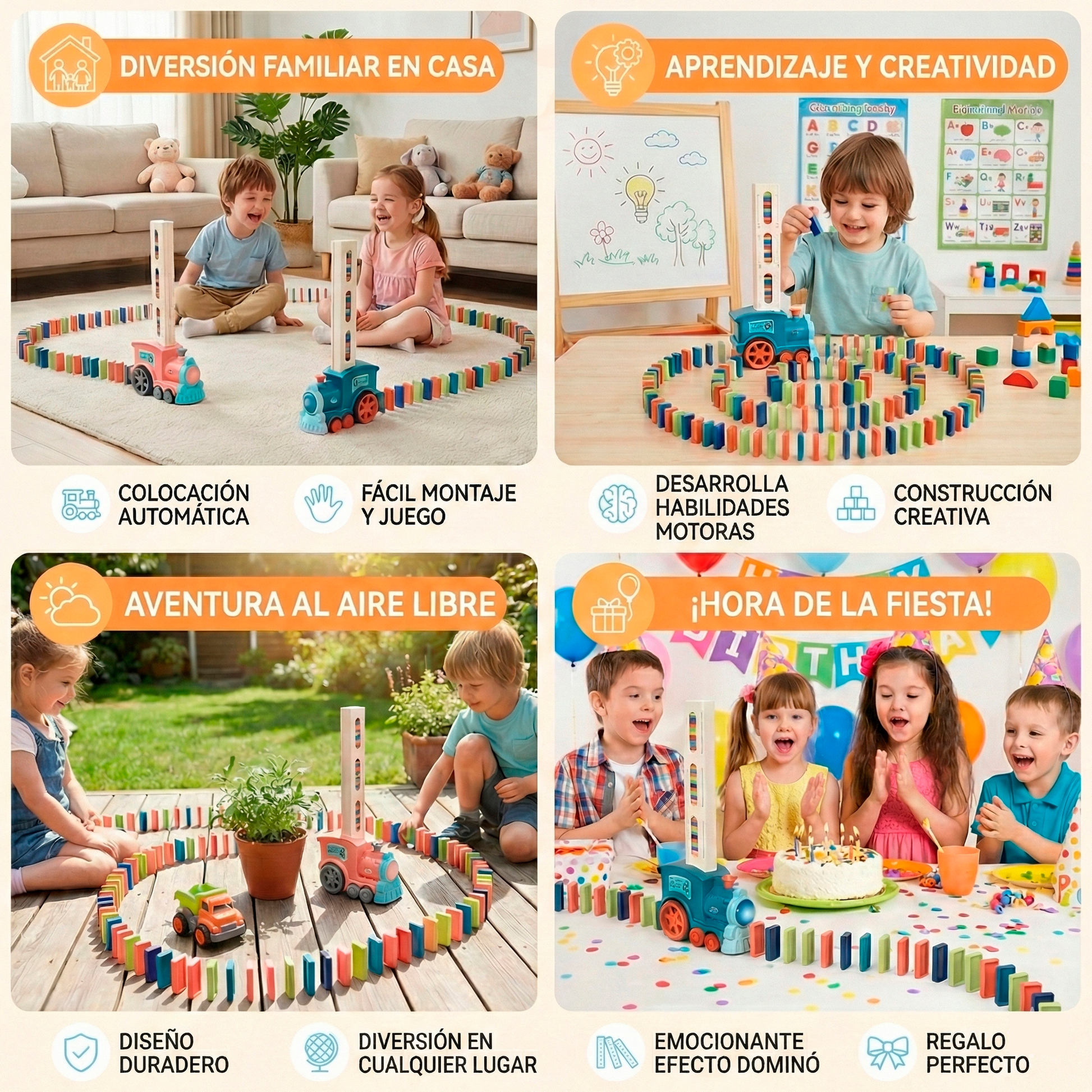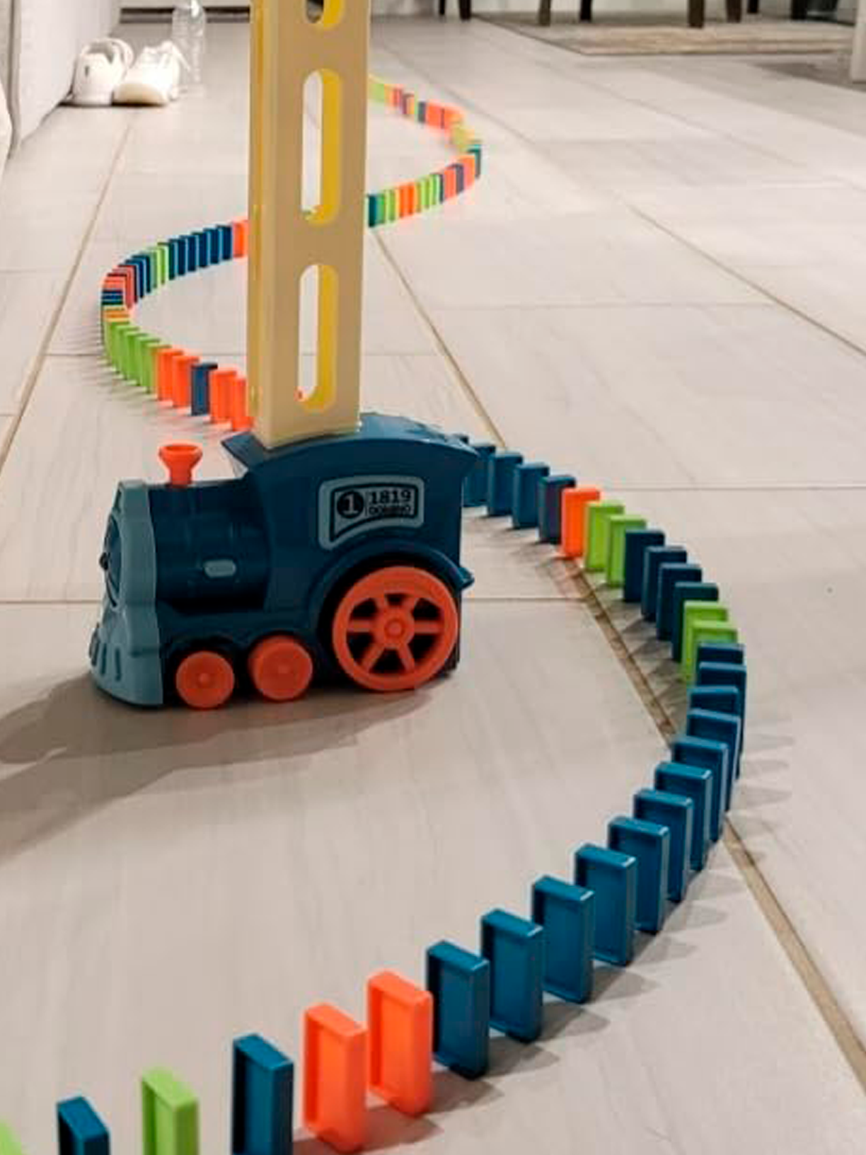 Pero este tren dominó automático mantiene la atención y la creatividad en alto, desde la primera vez que lo encienden.